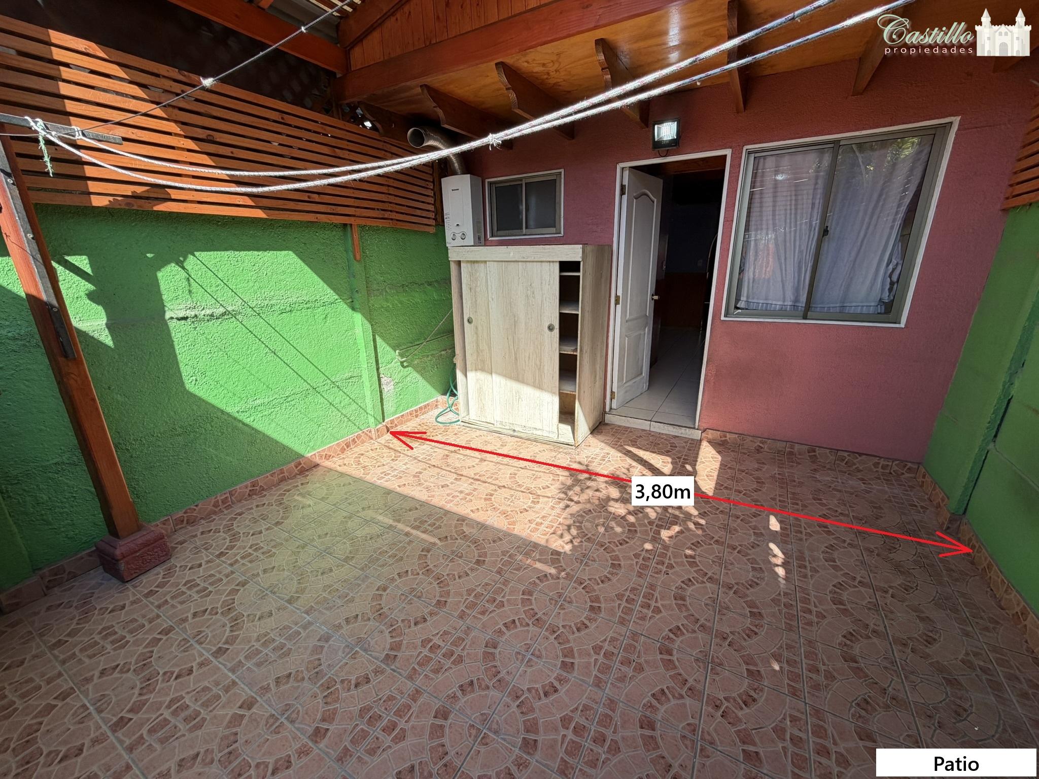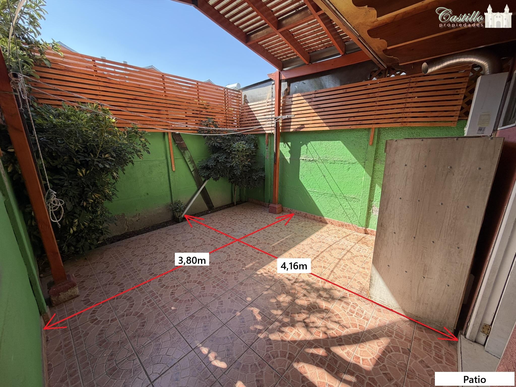 El antejardín tiene una zona con piso cerámico y una menor parte con radier. Patio completo con piso cerámico.