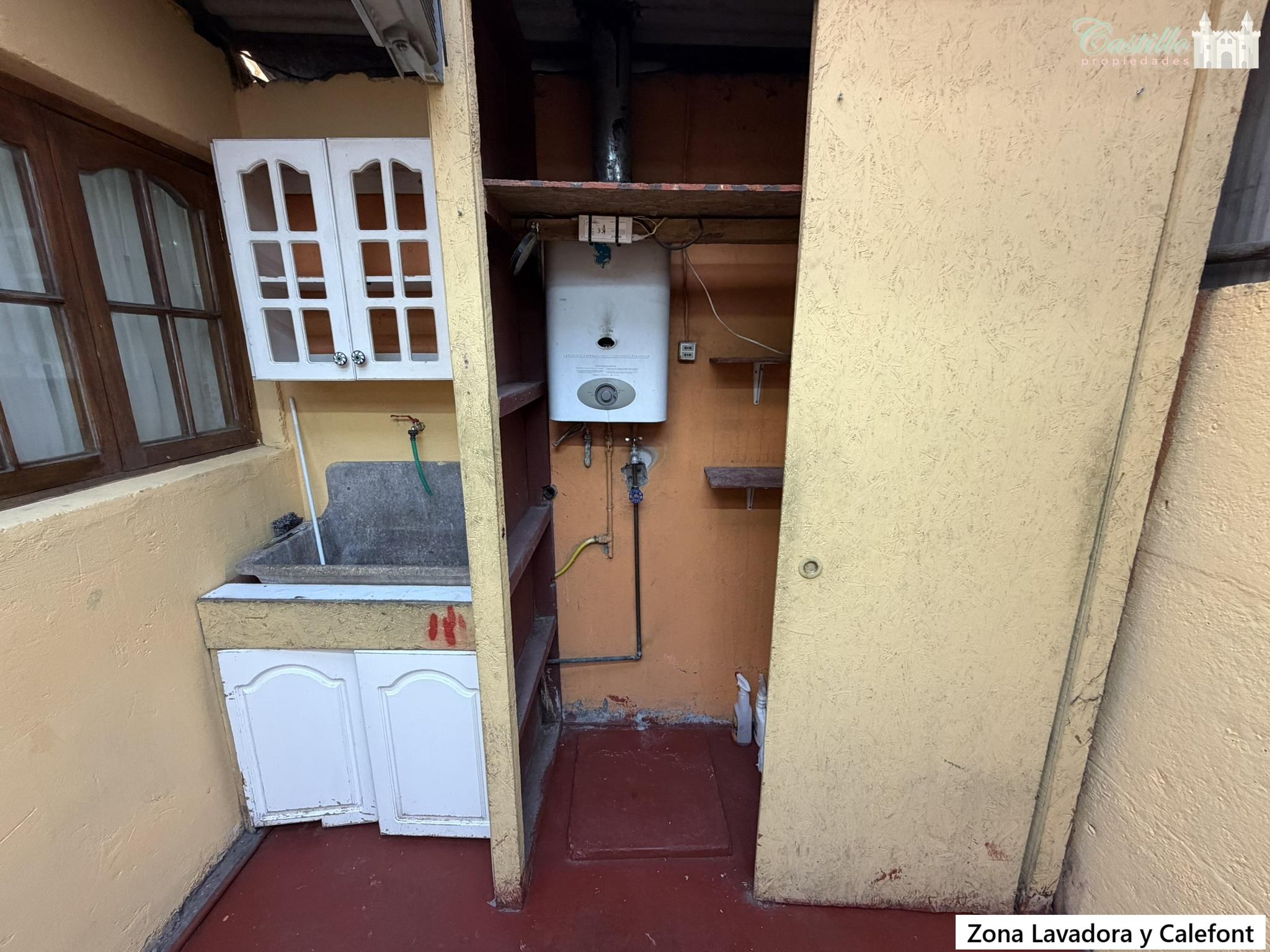 Sistema de agua caliente funciona mediante calefón con cilindro de gas. Tanto el calefón como la instalación para la lavadora se encuentran dentro de un closet en el antejardín.