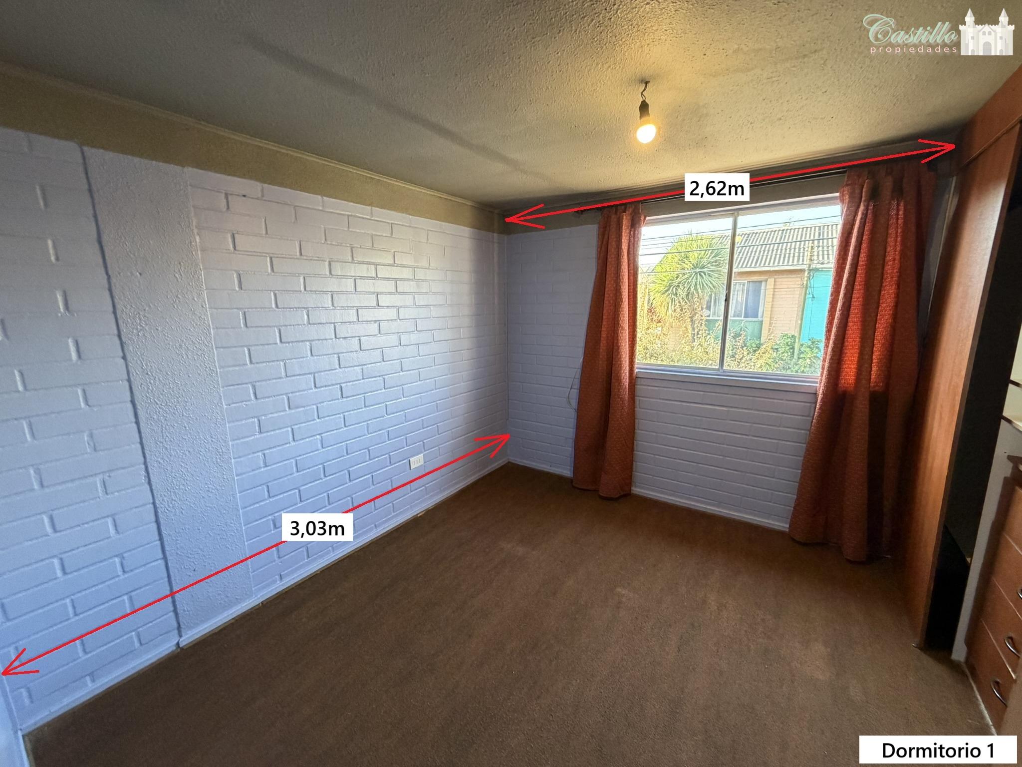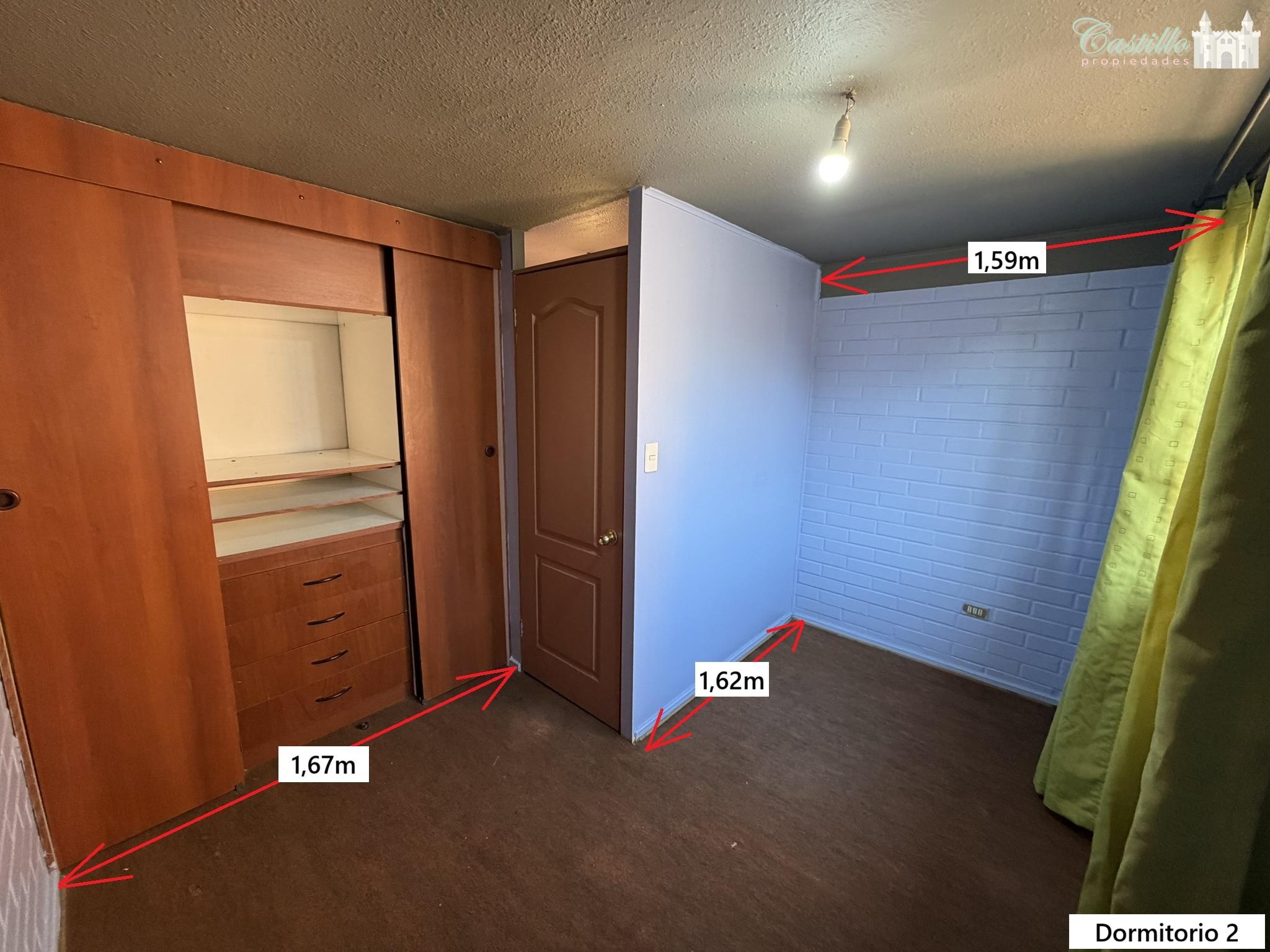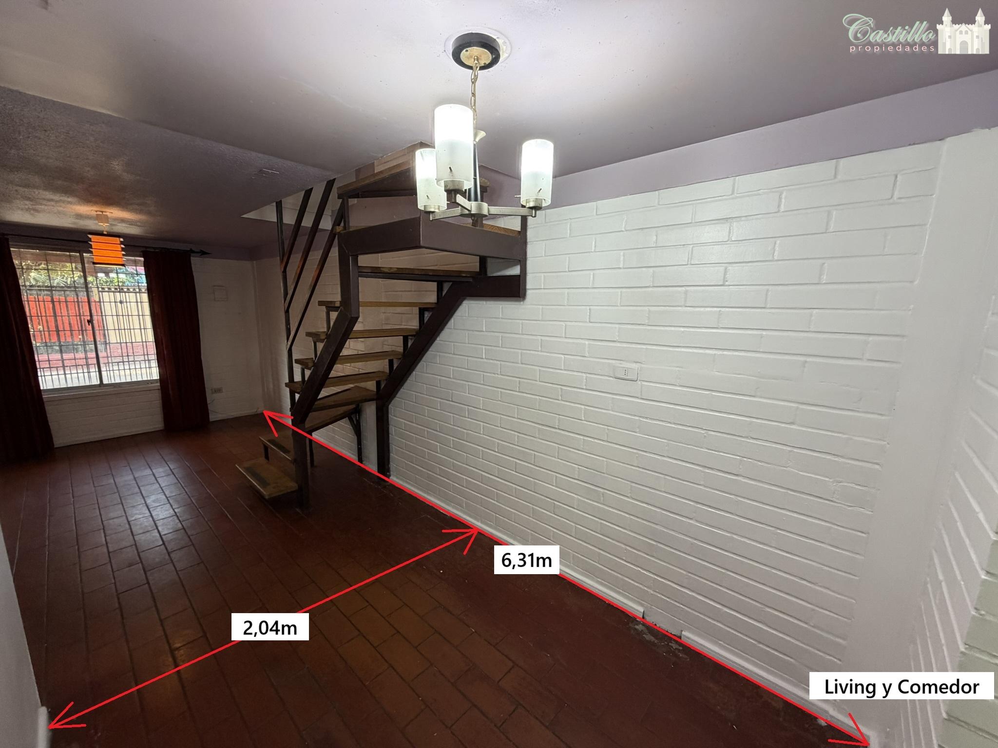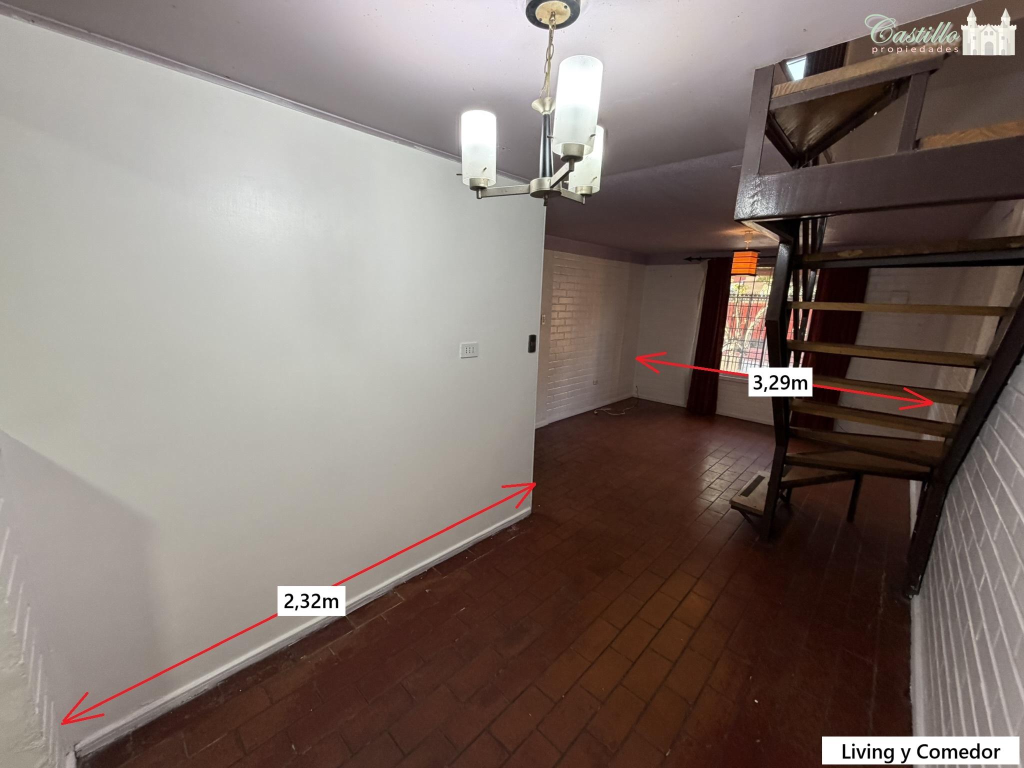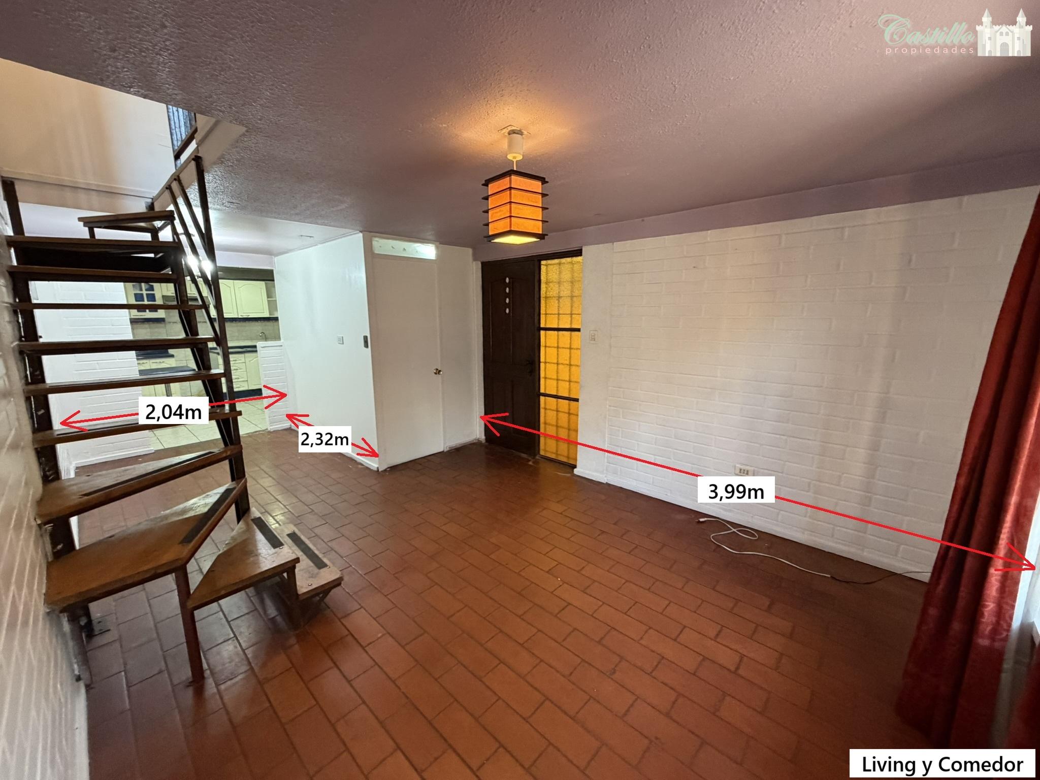 En el primer piso cuenta con living - comedor, amplia cocina independiente, amoblada y equipada con campana eléctrica (con espacio para horno a gas de 0,56m de ancho) y 1 baño con tina. El segundo piso cuenta con 2 dormitorios, ambos con closet.