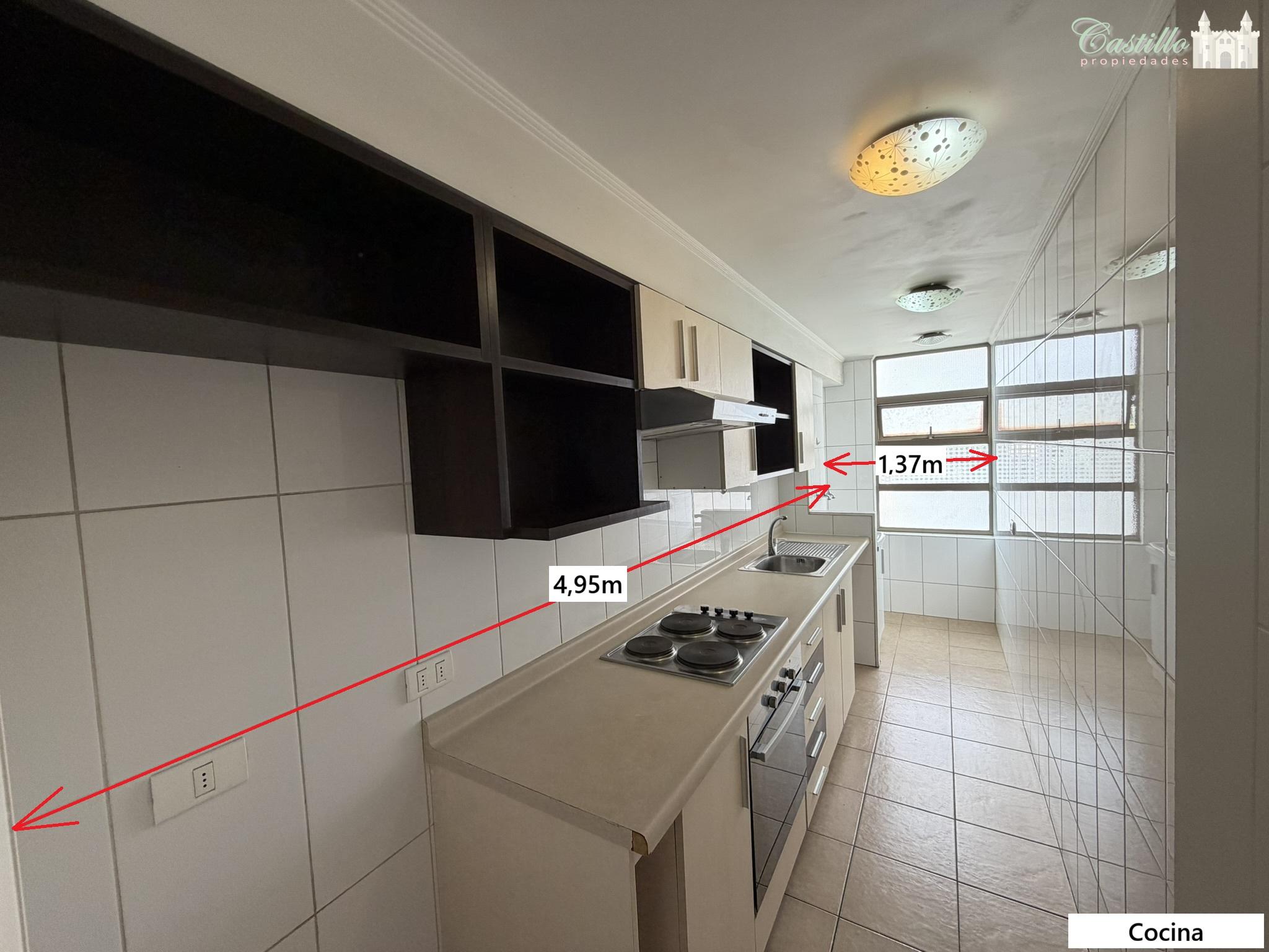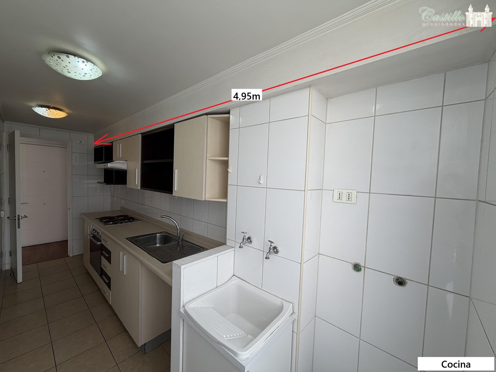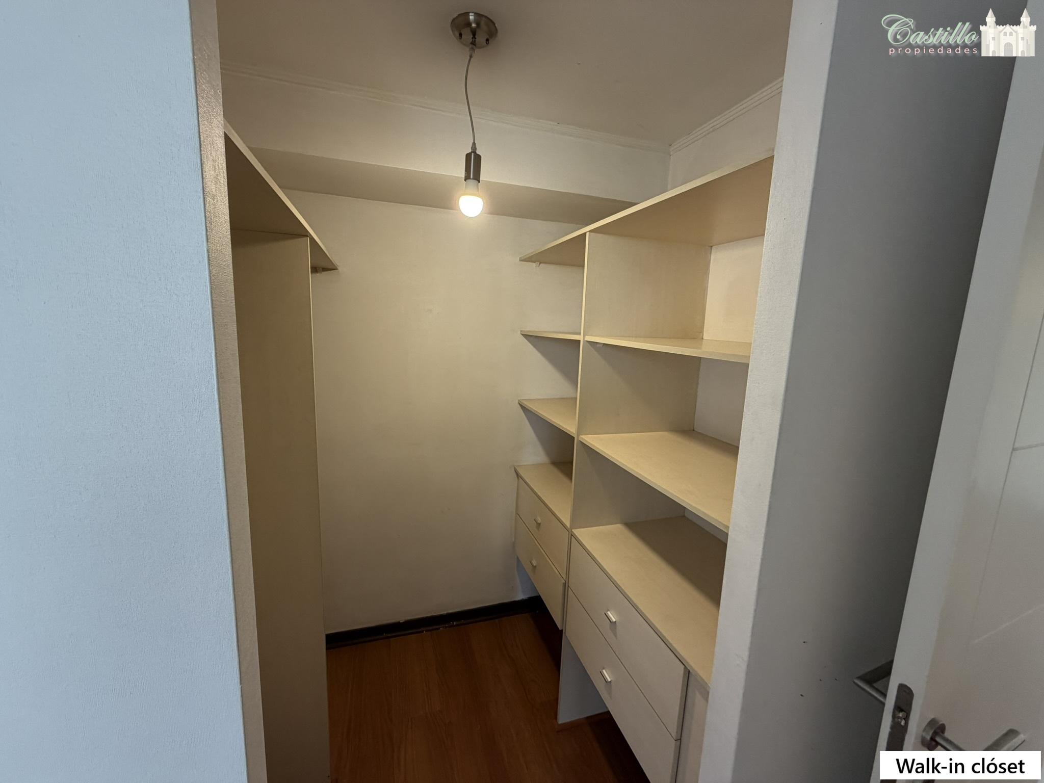 Living y comedor juntos, cocina independiente amoblada (equipada con encimera, horno y campana eléctrica), 2 dormitorios (ambos con closet uno de ellos con walking closet) y 2 baños con tina. Balcón de 2,9 m2.